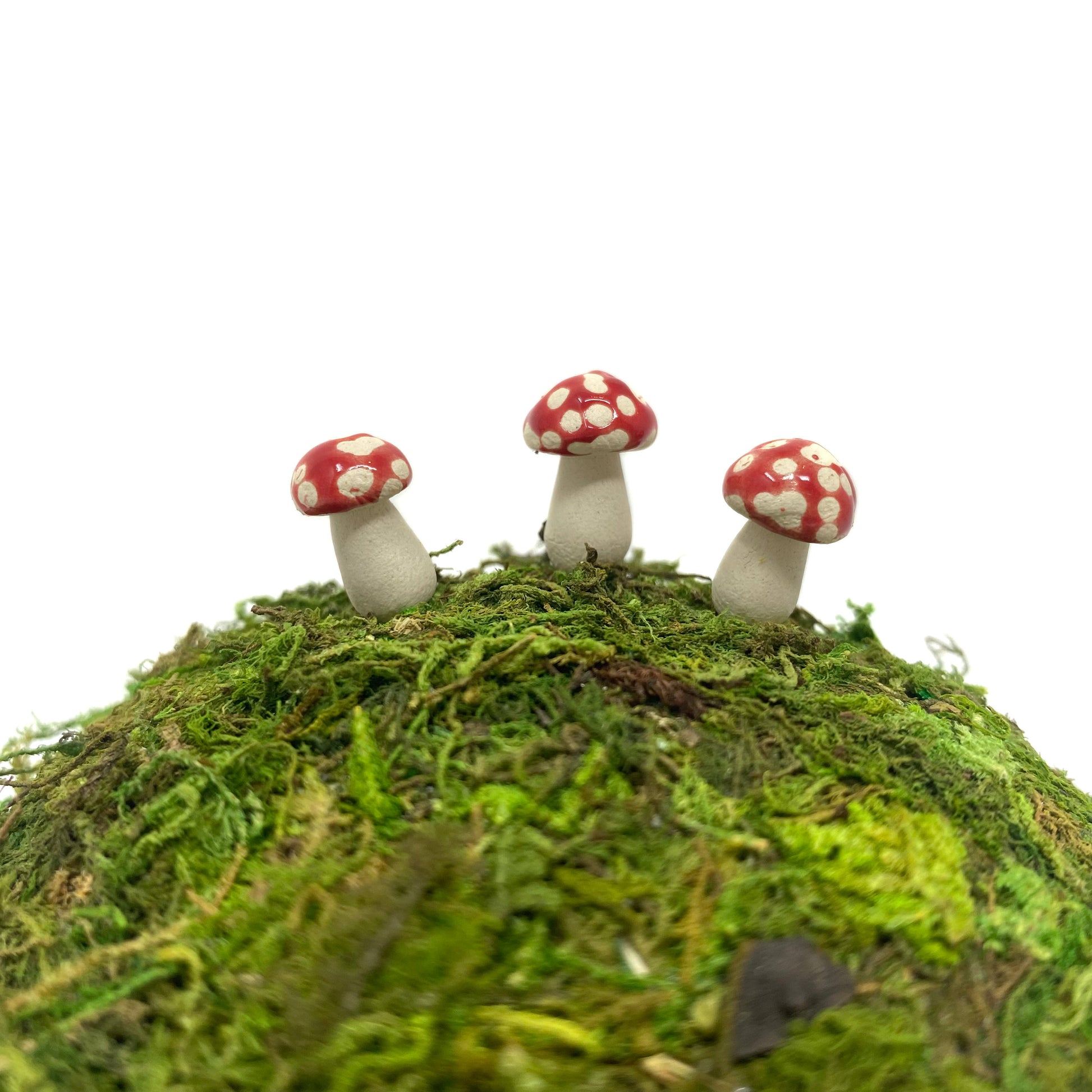 Bring a little woodland wonder to your world with these hand-sculpted miniature Amanita mushrooms. Each set includes three unique spotted toadstools, lovingly crafted to add a pop of charm to houseplants, terrariums, fairy gardens, or creative displays.