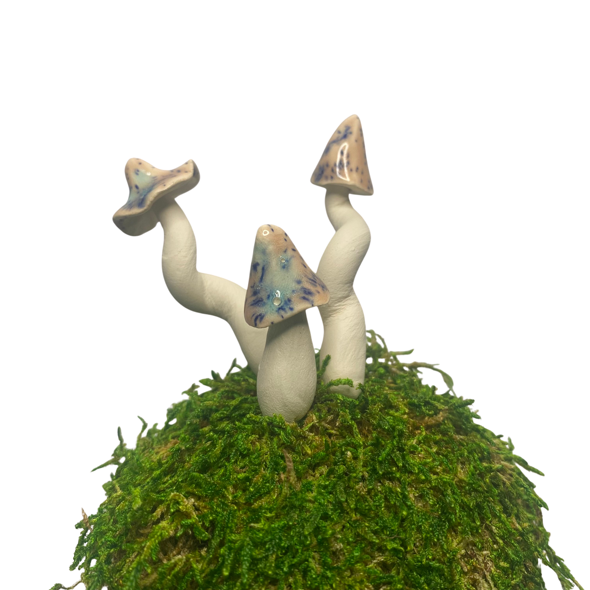 • A curated mix of 3 hand-sculpted ceramic mushrooms (styles and shapes vary)