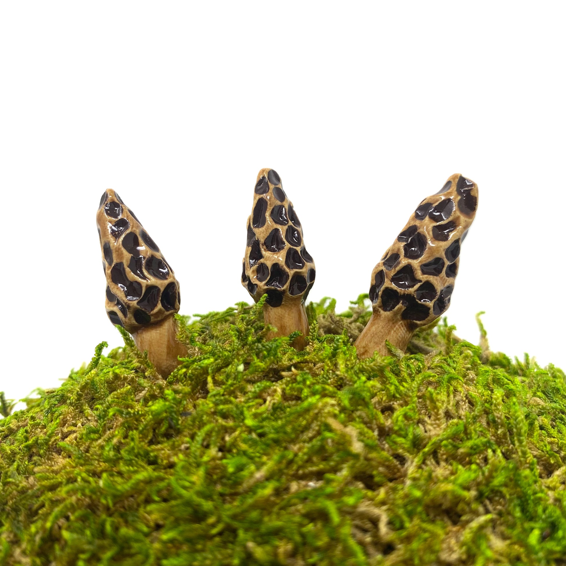 Each morel is carefully crafted with textured detail, glazed for a lifelike finish, and anchored with a wire stem so they’re easy to “plant” wherever you please.